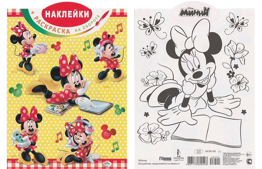- Несколько наклеек на лицевой стороне и раскраска на обороте