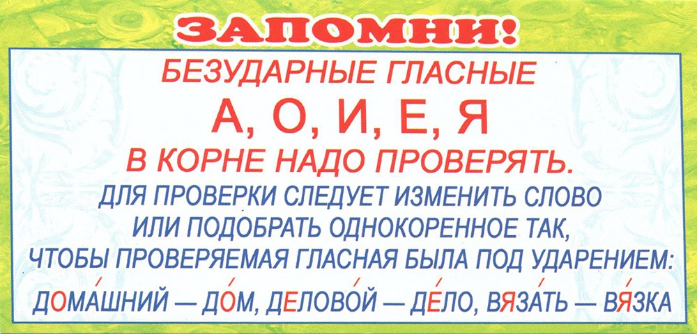 Карточка-шпаргалка "Запомни: безударные гласные" ШМ-3590сф
