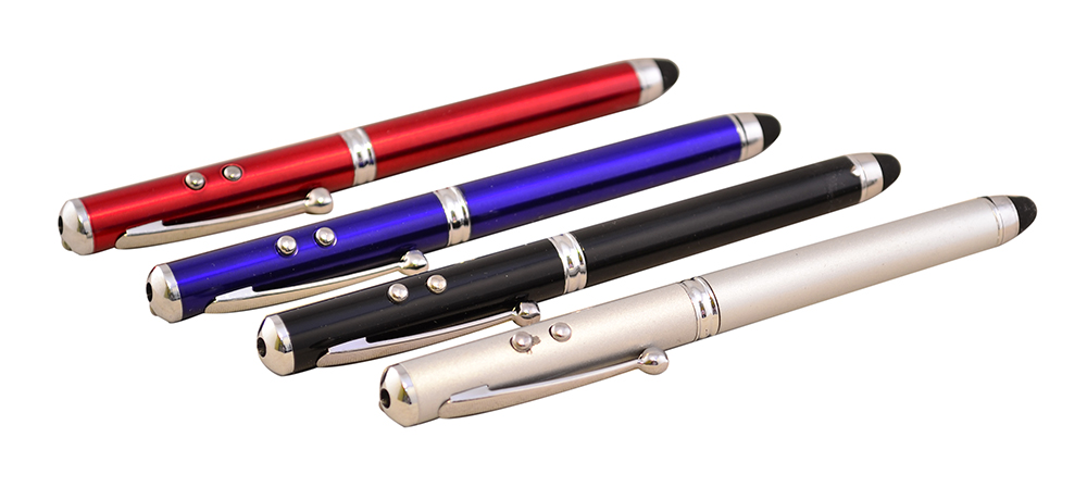 Уникальная шариковая ручка 4 в 1, она сочетает в себе ручку, лазерную указку, стилус и фонарик!