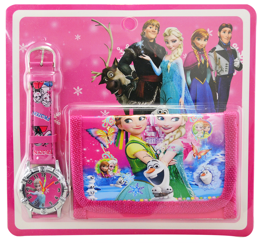Яркий и красочный подарочный набор для девочек. Часы кварцевые (на батарейках) и кошелек с изображением любимых героев. Упаковка блистер, с яркой картинкой.