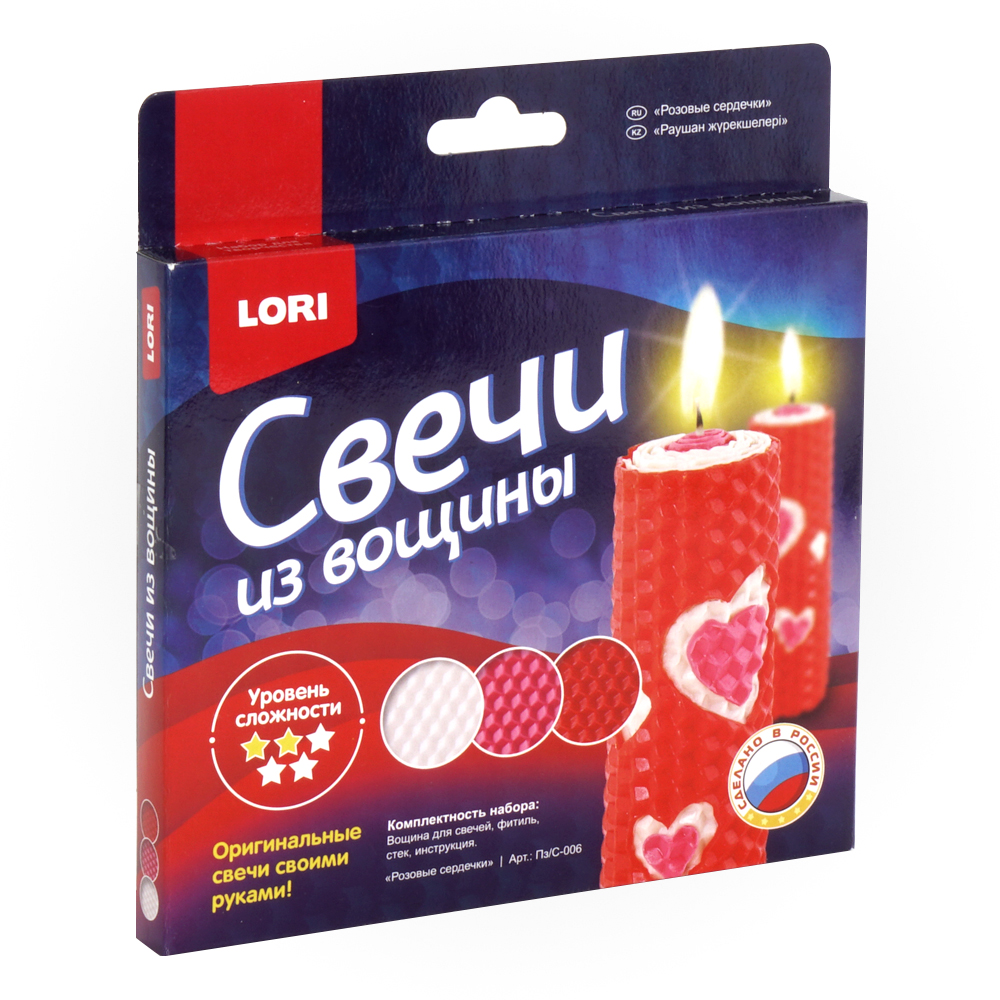 Набор для творчества. Свечи из вощины "Розовые сердечки"