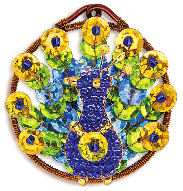 Серия изящных ювелирных кулонов в виде милых миниатюр: в круг из медной проволоки вплетается маленькая сюжетная сценка! Вызывающе красивый павлин распустил свой дивный хвост. Изделие сплести не сложно, нужно только немного терпения и усидчивости. Получится изумительное украшение, которое можно носить или подарить.