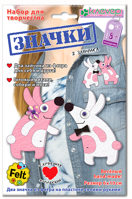 Набор для творчества. Создание значка из фетра "2 зайчика"
