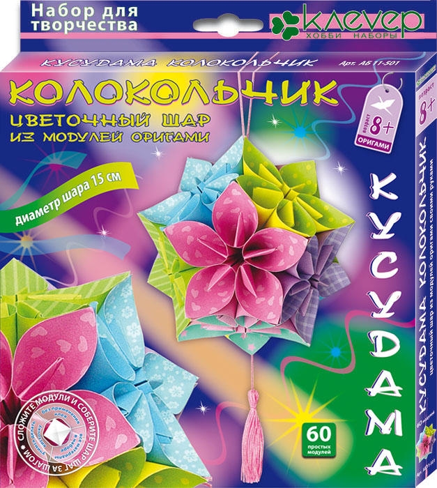 Ребёнок может начать, освоив лёгкий способ сложения, с яркого весёлого «Колокольчика». Кусудама «Колокольчик» хоть и состоит из 60-ти модулей, но очень проста в изготовлении. Мы значительно упростили классическую схему складывания модулей, а сборка при помощи двустороннего скотча доставит одно удовольствие! Немного терпения и оригинальное украшение интерьера готово!