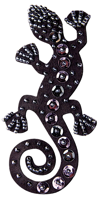 Элегантность и блеск чёрного цвета - в модной серии нашивок «Black patch»! Готовая фигурка из фетра - изящный силуэт ящерицы, бисер с эффектом гематита и мерцающие пайетки помогут создать дизайнерское изделие и украсить им любимое однотонное платье, сумочку или головной убор!