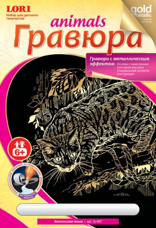 Набор для творчества. Гравюра с металлическим эффектом золота "Бенгальская кошка"