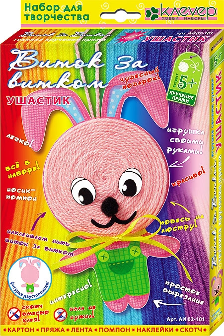 Набор для творчества. Изготовление фигурки из пряжи "Ушастик"