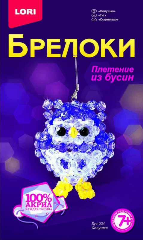 Наборы для творчества. Плетение из бус. Брелок "Совушка"
