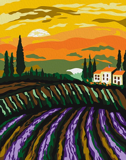 Вы всегда думали, что создание пейзажа – это сложное и кропотливое занятие? С этим набором для творчества каждый сможет нарисовать прекрасное лавандовое поле под закатным небом. Все нужные краски и аксессуары для работы уже есть в комплекте. На профессиональный холст нанесены контуры будущего изображения, а все сектора помечены номерами, соответствующими определенным цветам.
