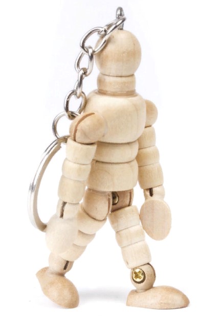Деревянный брелок, изображающий человеческую фигуру с подвижными руками и ногами. Его возможно декорировать самостоятельно, тем самым создать собственный и неповторимый дизайн стильного аксессуара.