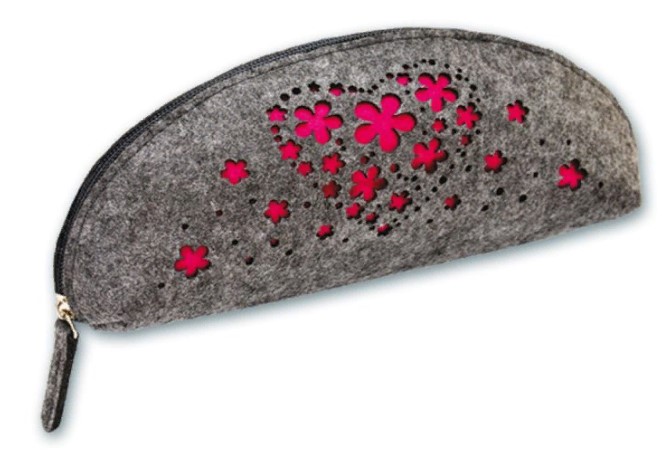Школьный стильный пенал из синтетического фетра, узор выполнен с помощью фигурной вырубки.