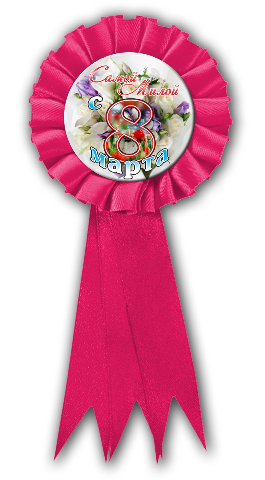 Значок-розетка из атласной ленты *С 8 марта!*, розовый