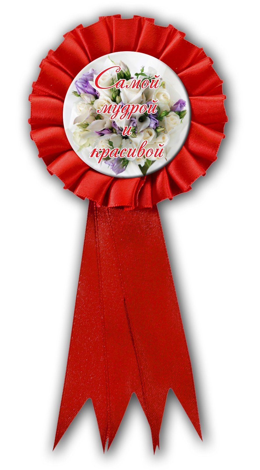 Значок-розетка из атласной ленты *Самой мудрой и красивой*, красный