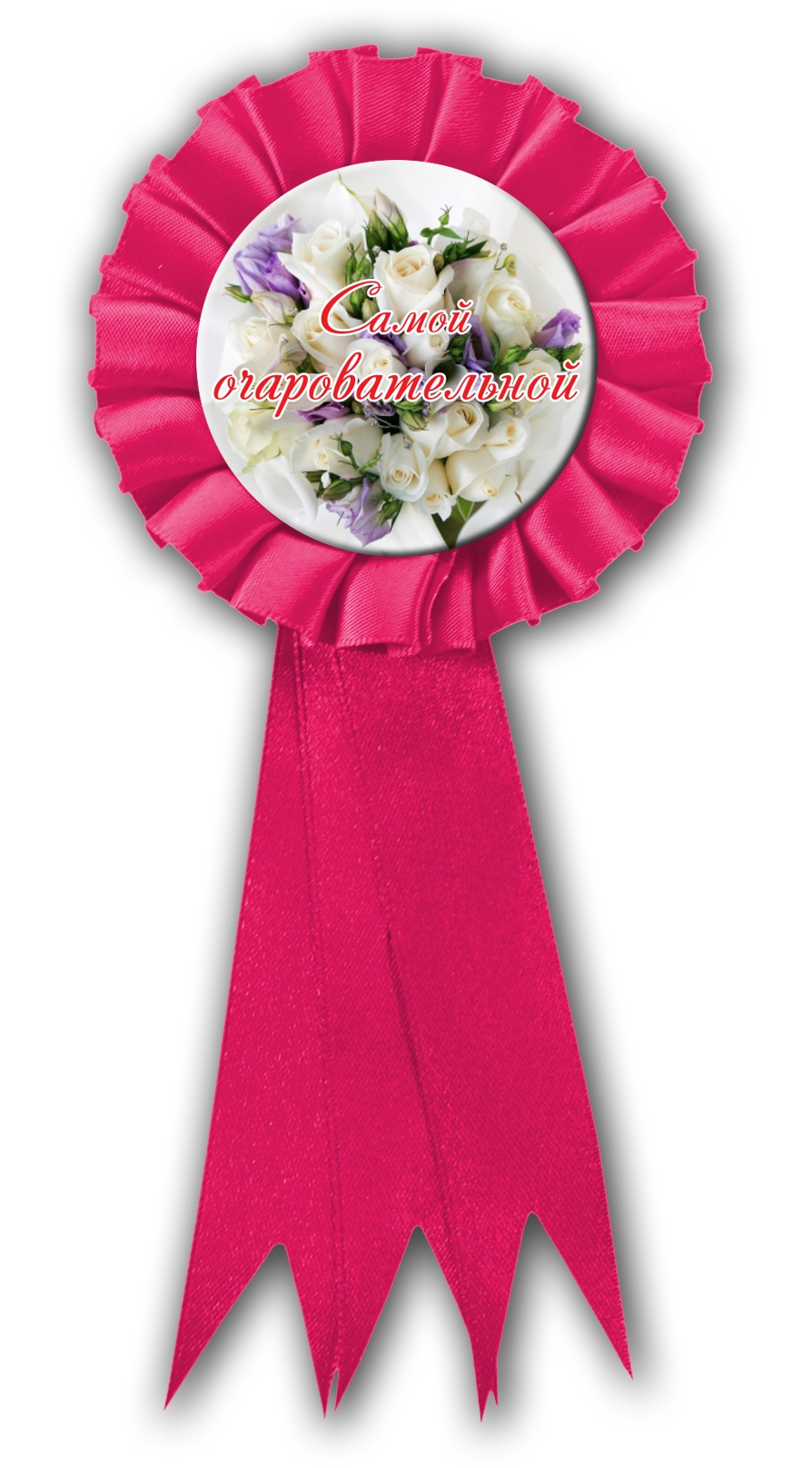 Значок-розетка из атласной ленты *Самой очаровательной*, розовый
