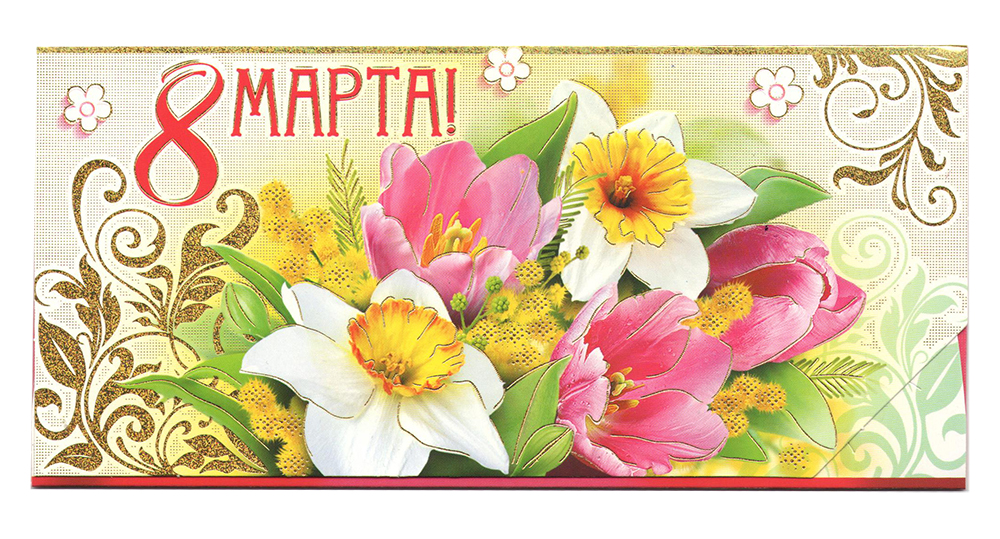 Конверт для денег "8 марта" 170*82 мм фольга 90-1376-М