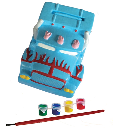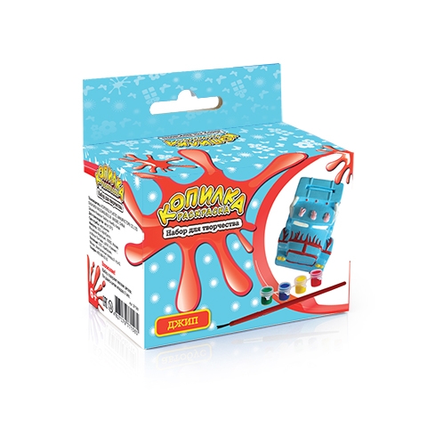 В комплекте: копилка, краски 4 цветов, кисточка.
