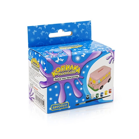 Автобус - одна из популярных игрушек у мальчишек. Пусть малыш раскрасит его так, как хочет, только помогите ему смешать краски, чтобы получить много цветов. Набор для творчества - копилка, краски и кисточка в красочной коробке с европодвесом. Все копилки в этой серии: - не бьются (безопасны для детей) - приятные на ощупь - легко раскрашивать - открываются снизу, копилки не надо разбивать, чтобы достать накопления