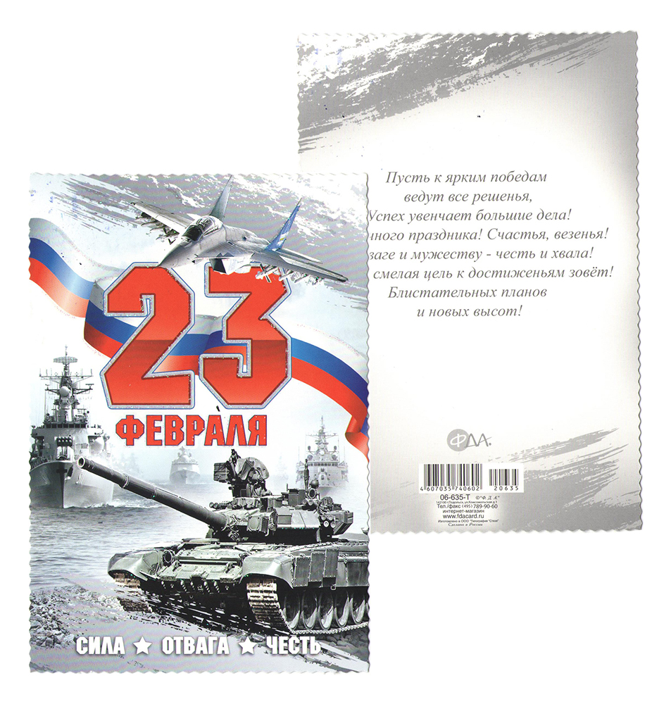 Красочная открытка с пожеланием на обороте. Красивое дополнение к подарку на "23 февраля".