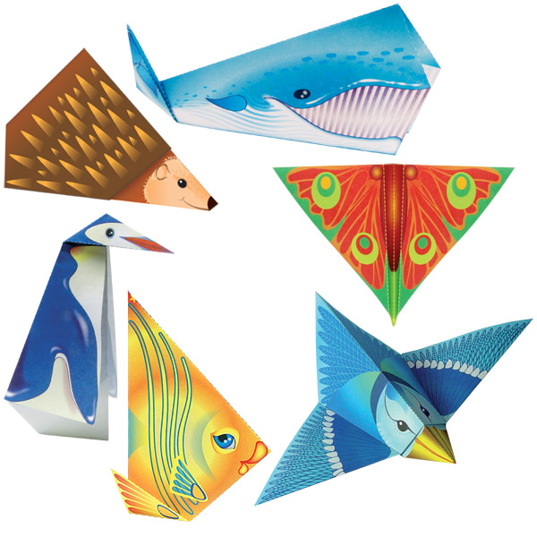 - В наборе: 6 тренировочных листов, 6 цветных листов, 6 листов для раскраски – все листы с пунктирными линиями для облегчения складывания,1 тест-лист для обучения оригами, книжка-инструкция