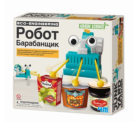 Соберите робота, который умеет барабанить по самым разным поверхностям. Ваше чудо техники будет мастерски отбивать ритм, а вы познакомитесь с основами электричества, механики и роботостроения. Важная составляющая данного набора – экологичность. Дети поймут, что удивительные изобретения можно создавать из подручных материалов, используя возобновляемые источники энергии.