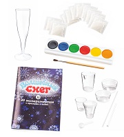 - В наборе: волшебный снег 10 пакетиков, краски, кисть, мерный стакан, мерная ложечка, пластиковая трубка, пластиковая палочка для размешивания, емкости для экспериментов, цветной буклет