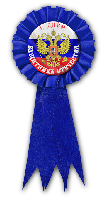 Значок-розетка синий атлас "С днем защитника отечества"*
