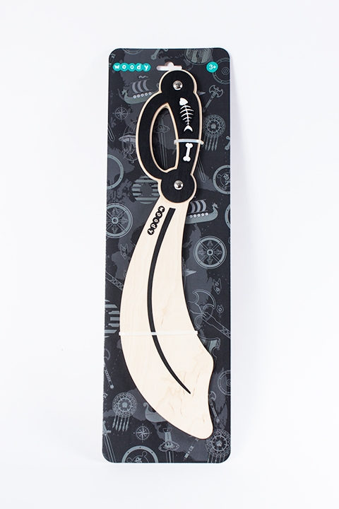 Это древнее оружие морского разбойника было найдено в старинном сундуке на дне океана. Каждый, кто возьмет его в руки, сможет отправиться на поиски приключений! Новая модель Woody «Сабля пирата» отличается необычной изогнутой формой и удобной рукояткой. Эта оригинальная игрушка хорошо смотрится на полках магазинов.