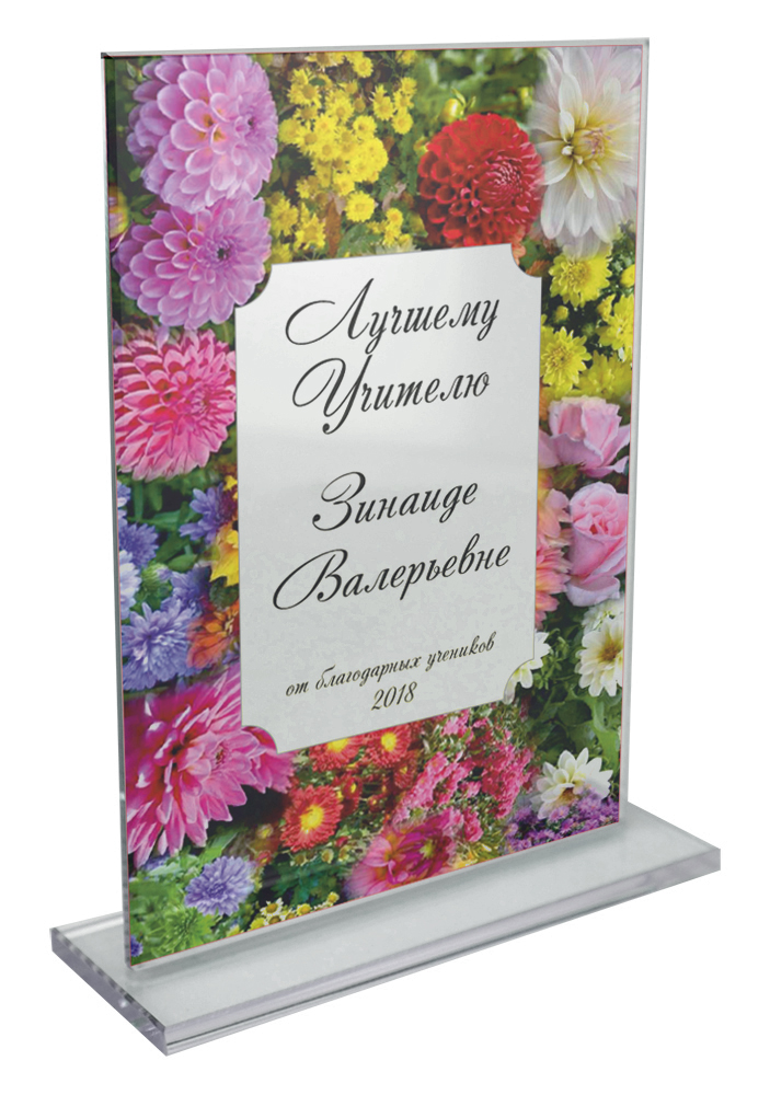 Стеклянная награда именная "Лучшему учителю"(цветы)***
