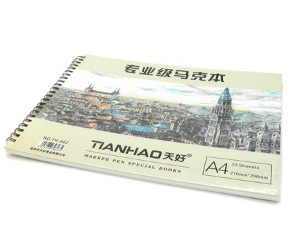 Скетчбук А4 30 листов BY-557 Для всех видов МАРКЕРОВ 120 г/м TIANHAO 210*290 мм Белая бумага, на спирали