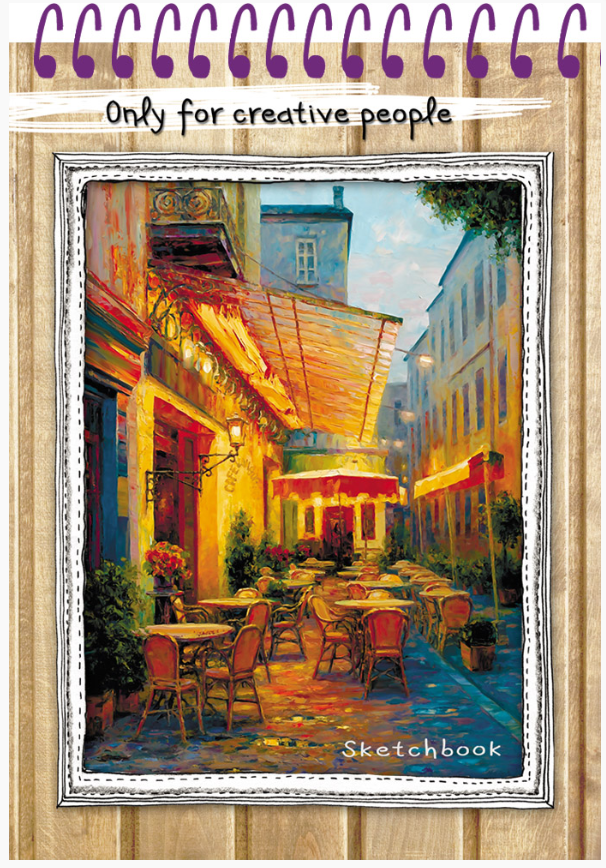 Скетчбук 80 листов, А5 "Уличное кафе" , евроспираль Проф-Пресс