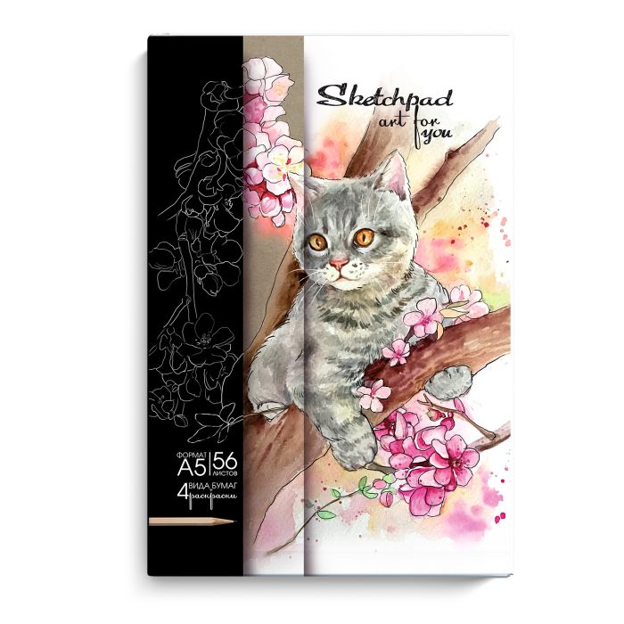 Скетчпад А5, 56 листов "Кошка" 145*210 мм, твердый переплет