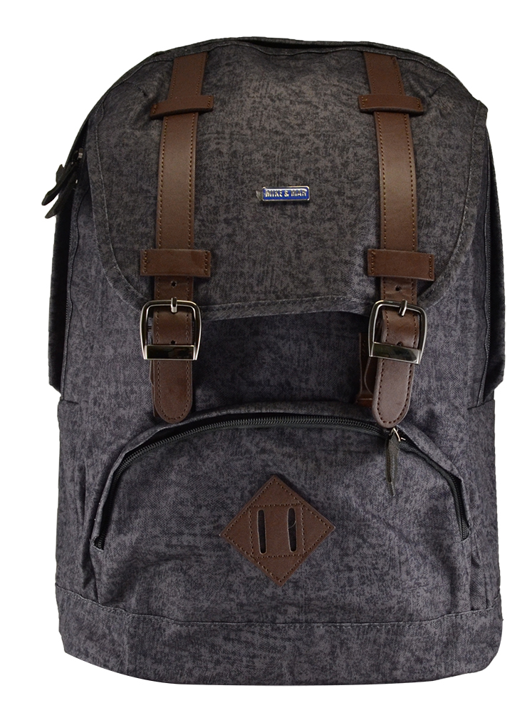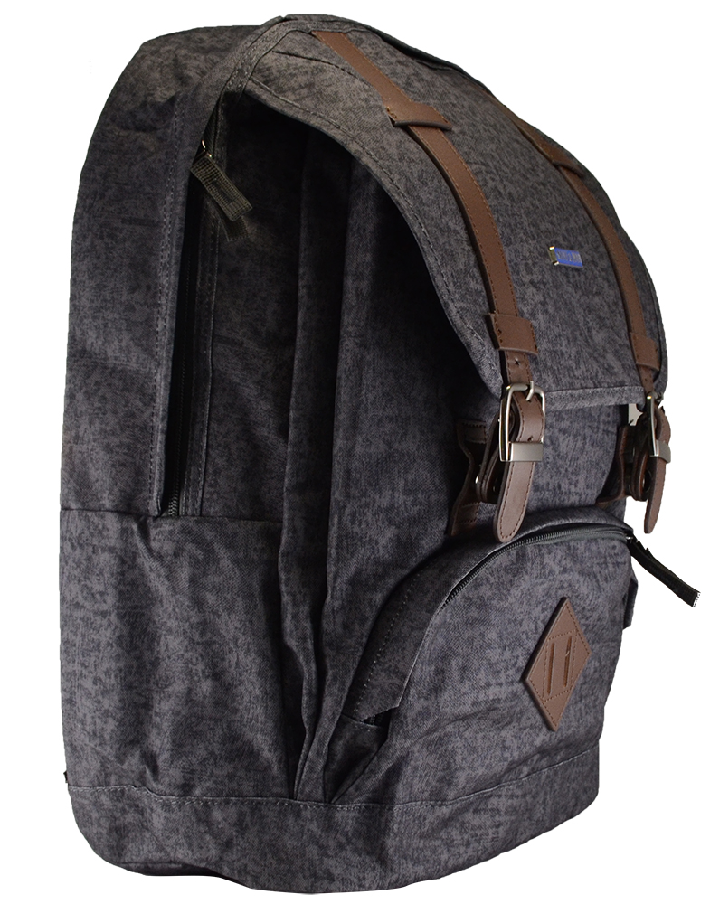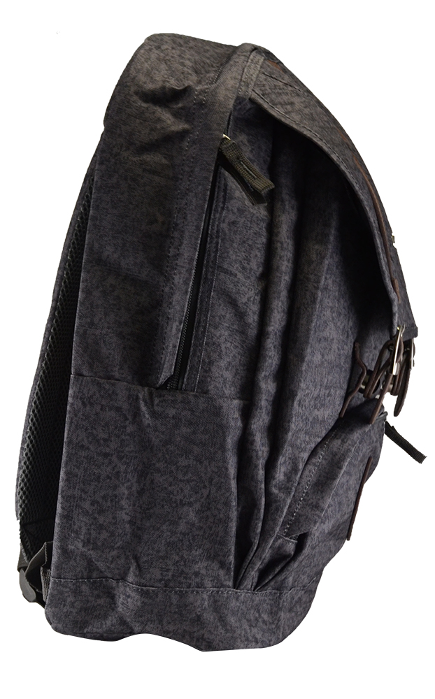 - Передняя стенка рюкзака представлена в виде накладного кармана, образующего дополнительное отделение рюкзака, закрывающееся фигурным клапаном с декоративными ремешками из искусственной кожи на магнитные кнопки.