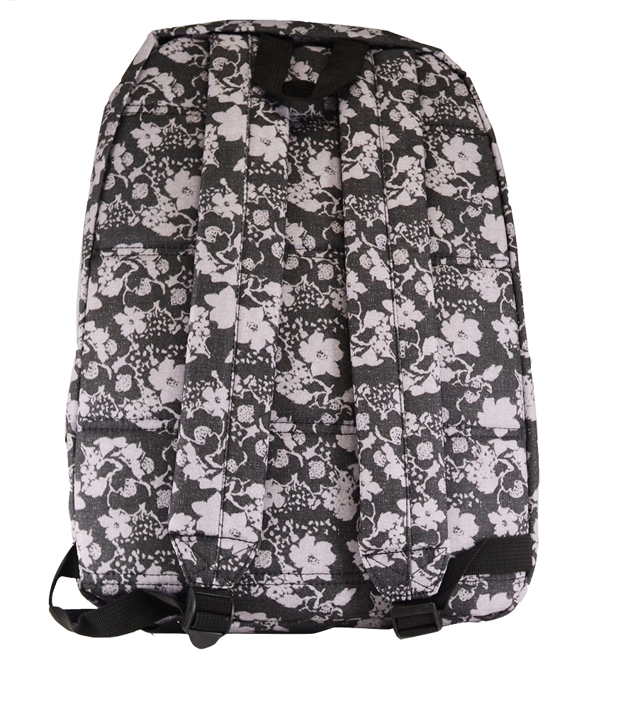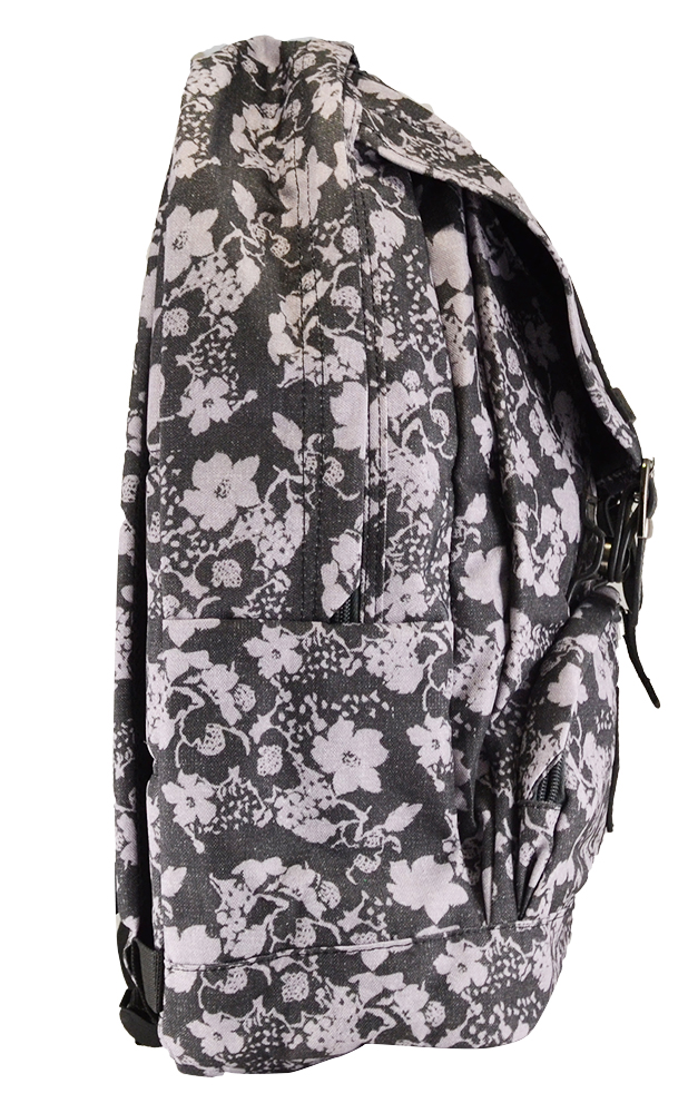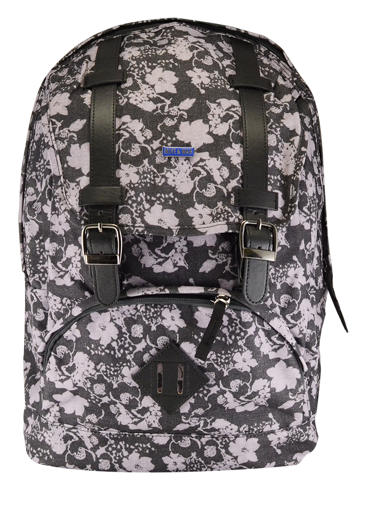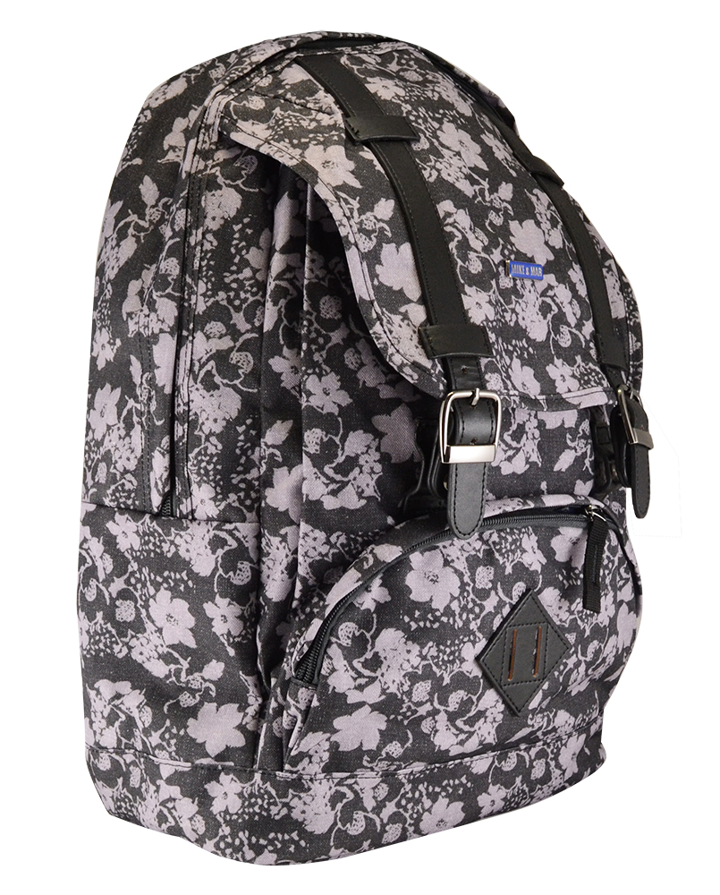 - Передняя стенка рюкзака представлена в виде накладного кармана, образующего дополнительное отделение рюкзака, закрывающееся фигурным клапаном с декоративными ремешками из искусственной кожи на магнитные кнопки.