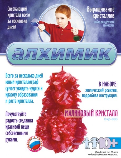 Набор для проведения опытов. Алхимик. Выращивание кристаллов "Малиновый кристалл"