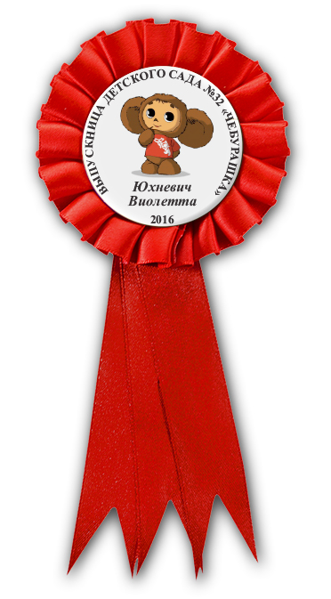 Образец надписи на именном значке-розетке "Выпускник детского сада. Чебурашка"