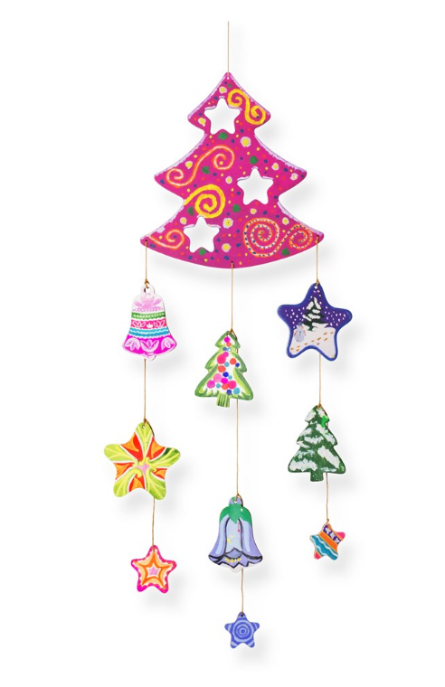 Новогоднее настроение появится у каждого в семье, если вместе сделать такое милое украшение для комнаты своими руками. Пусть ваш ребенок сам выберет цвет елки (ей вовсе не обязательно быть зеленой!), а также дополнит украшение сияющими звездочками и красивыми колокольчиками.