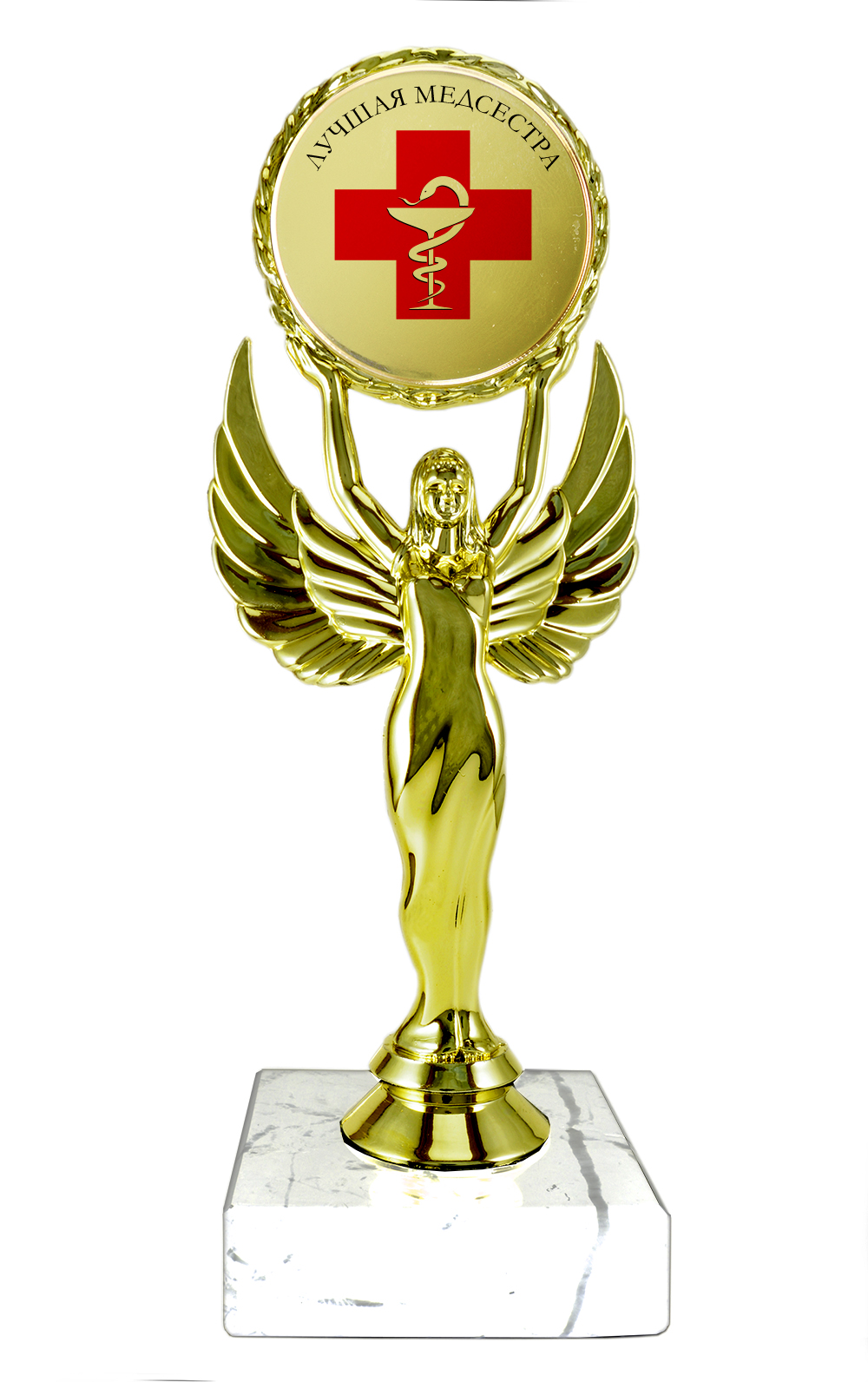 Статуэтка Ника с эмблемоносителем на мраморном камне "Лучшая медсестра"*