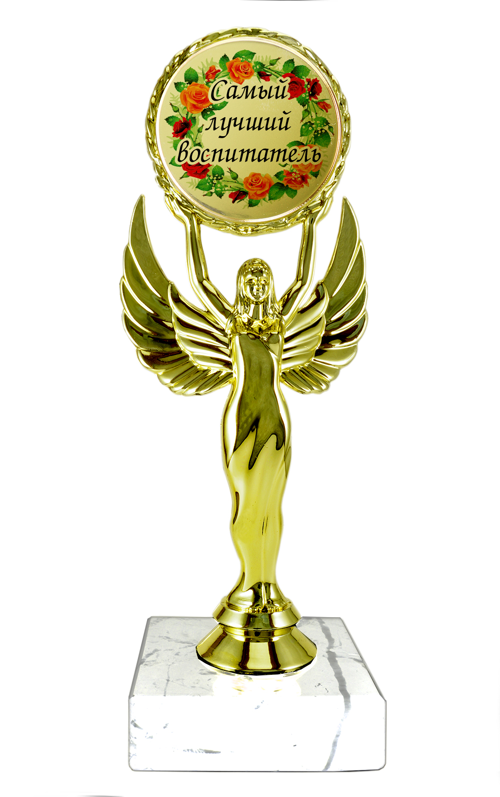 Статуэтка Ника с эмблемоносителем на мраморном камне "Самый лучший воспитатель"