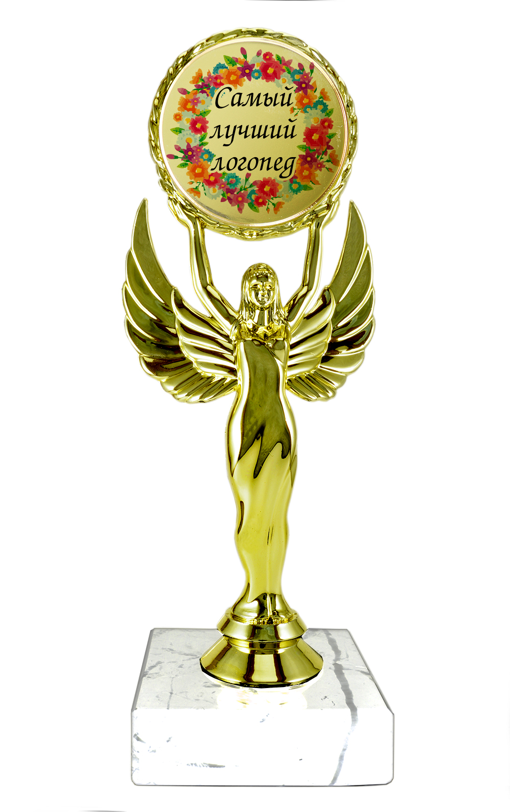 Статуэтка Ника с эмблемоносителем на мраморном камне "Самый лучший логопед"