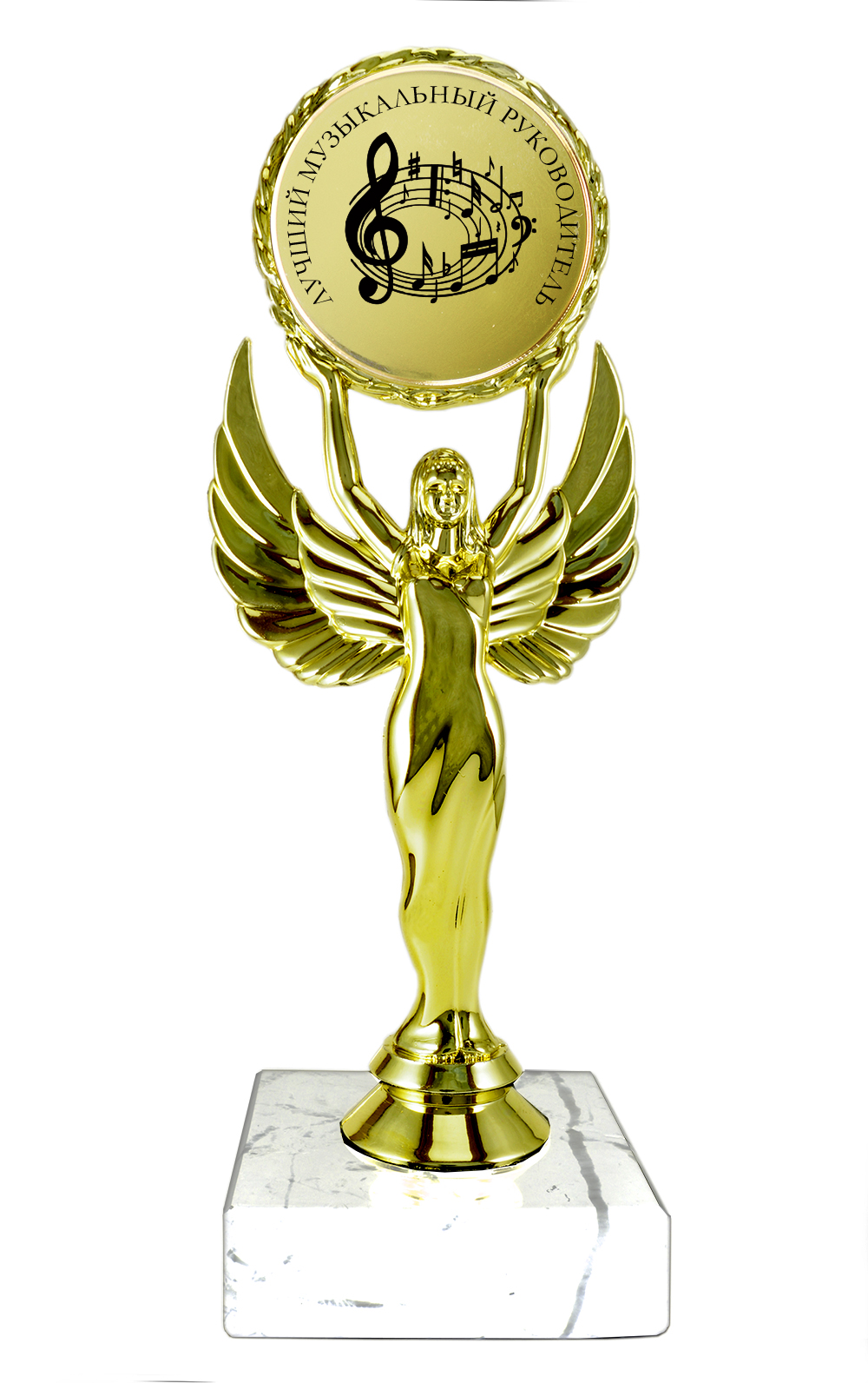 Статуэтка Ника с эмблемоносителем на мраморном камне "Лучший музыкальный руководитель"