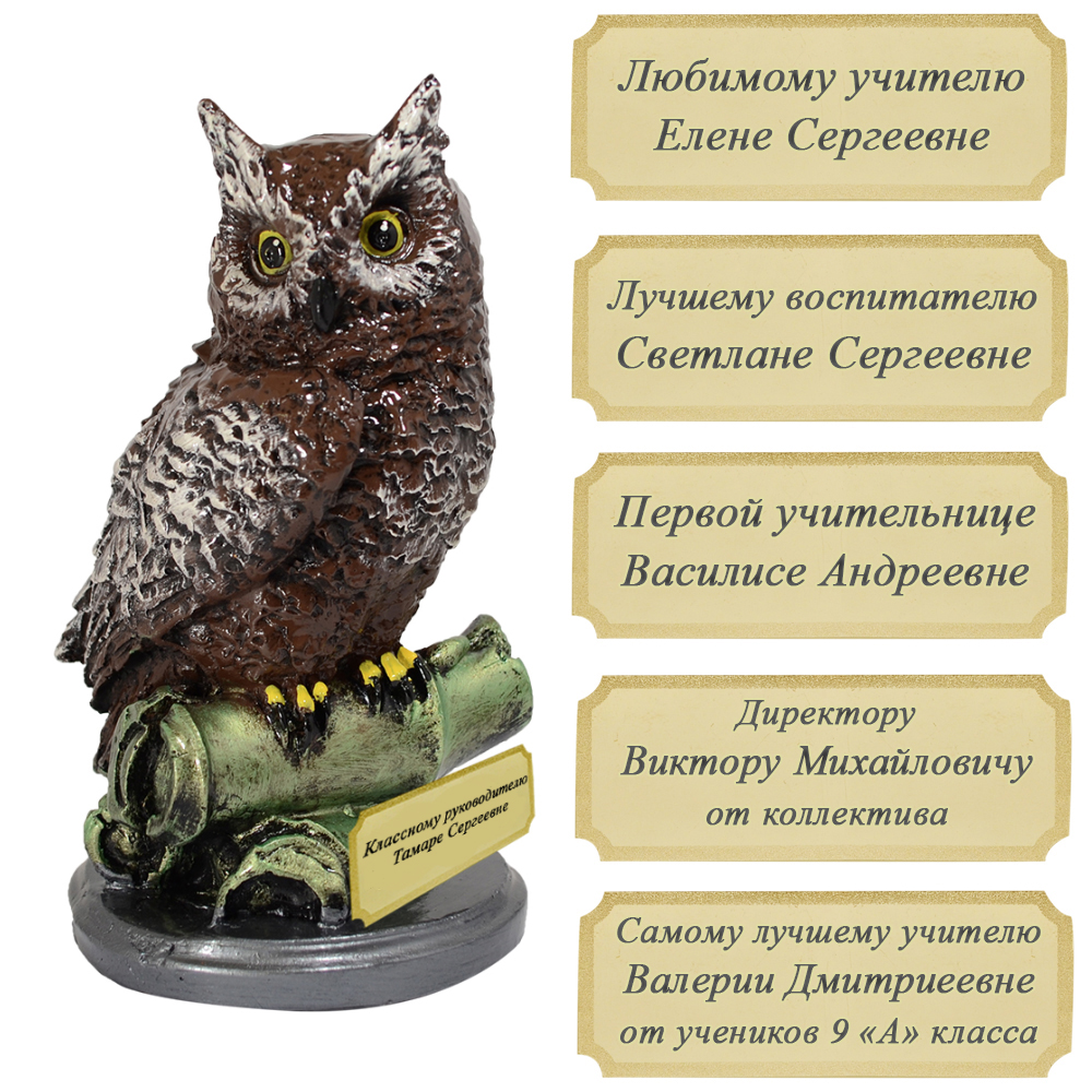 Фигурка выполнена в филина. Станет отличным подарком как для педагогов, так и для для выпускников детских садов и школ. Легко украсит любой домашний интерьер или рабочее место.