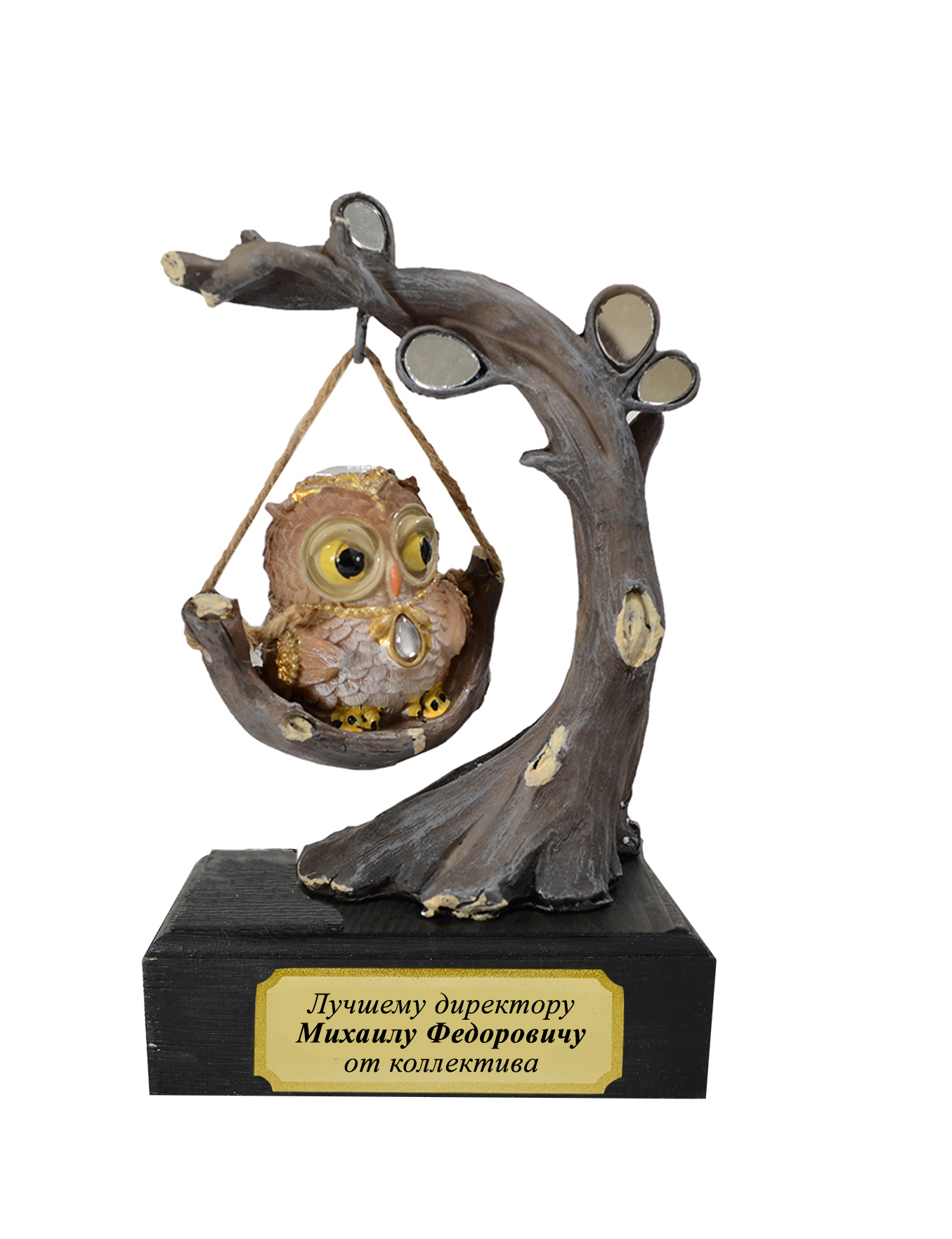 Фигурка выполнена в виде совы, которая пасположилась на качелях, украшена зеркалами. Станет отличным подарком как для педагогов, так и для для выпускников детских садов и школ. Легко украсит любой домашний интерьер или рабочее место.
