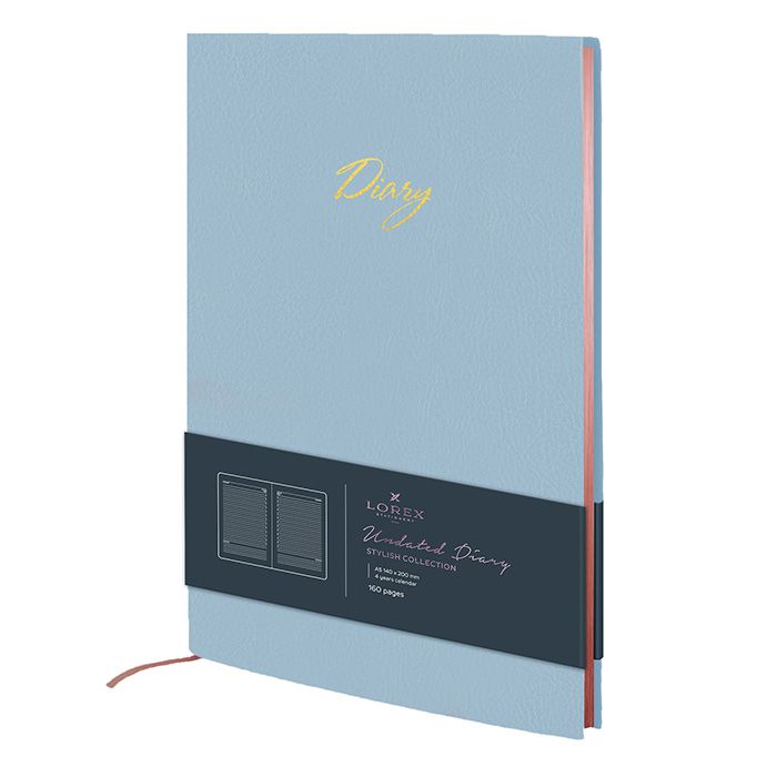 Ежедневник А5 недатированный LOREX ROMANCE STYLISH COLLECTION 80 листов, интегральная обложка, голубой с тиснением, ляссе, фактура кожа, тонированная бумага