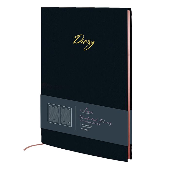 Ежедневник А5 недатированный LOREX ROMANCE STYLISH COLLECTION 80 листов, интегральная обложка, черный с тиснением, ляссе, фактура кожа, тонированная бумага