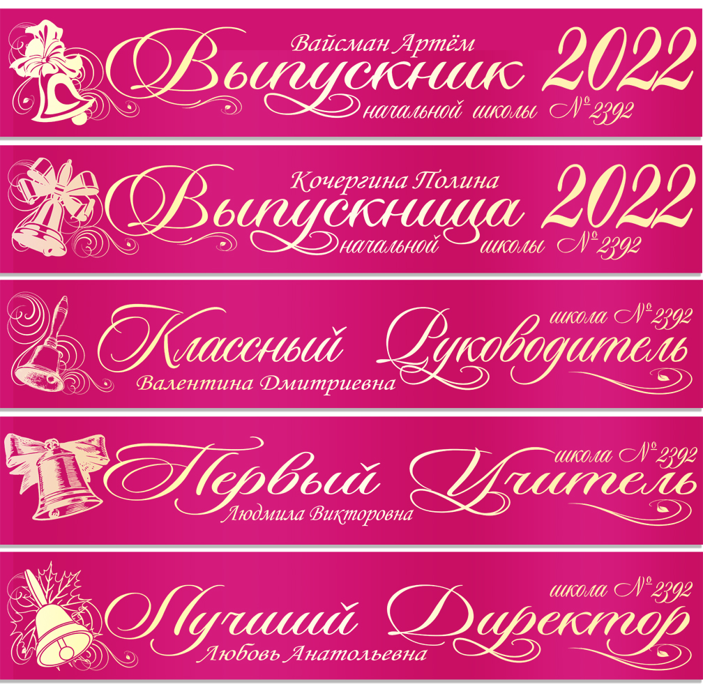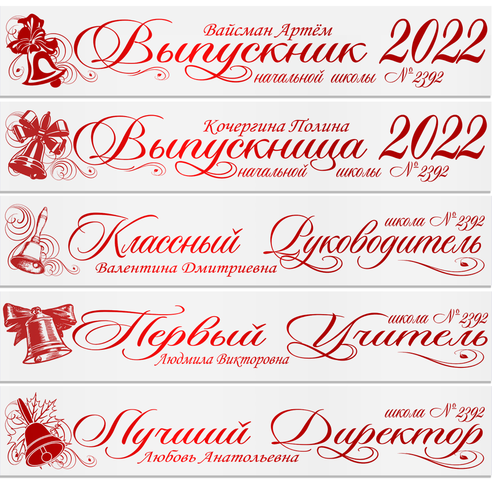 Именная атласная лента "Выпускникам начальной школы и педагогам" колокольчик в ассортименте**
