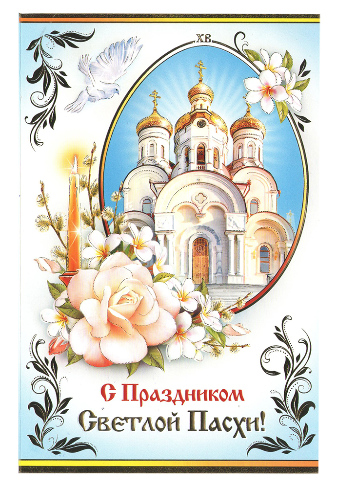 Красочная открытка с поздравлением в стихах. Красивый подарок к Пасхе! Поздравление уже напечатано на внутренней стороне, Вам остается только подписать ее и вручить.