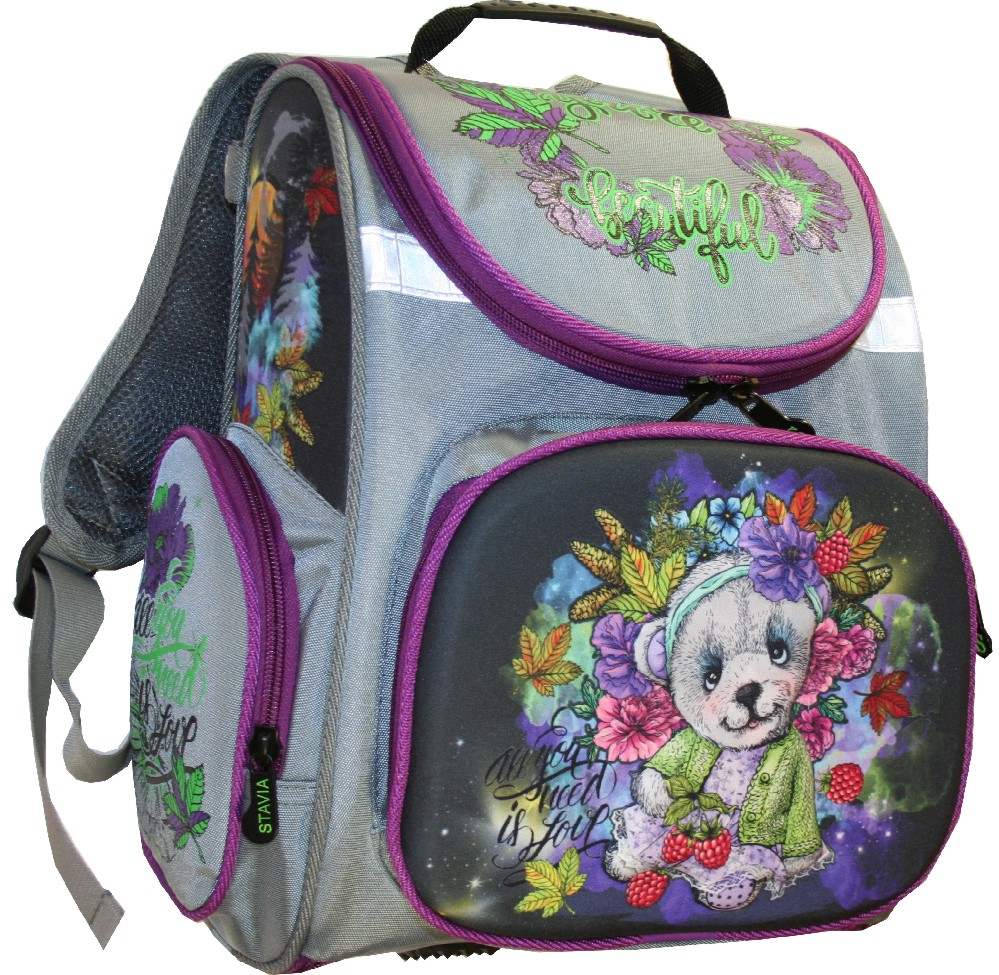 Ранец с ортопедической спиной разборный Stavia *Мишка* жемчужный