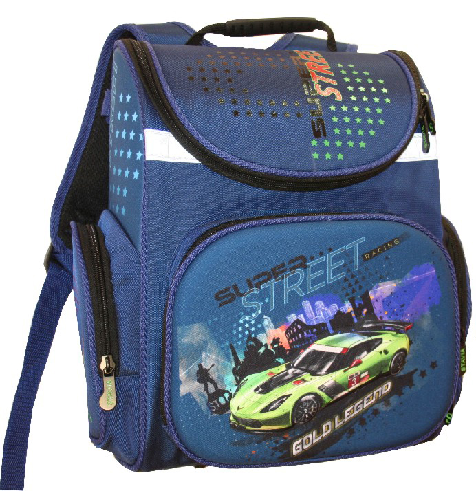 Ранец с ортопедической спиной разборный Stavia "Зеленое авто"