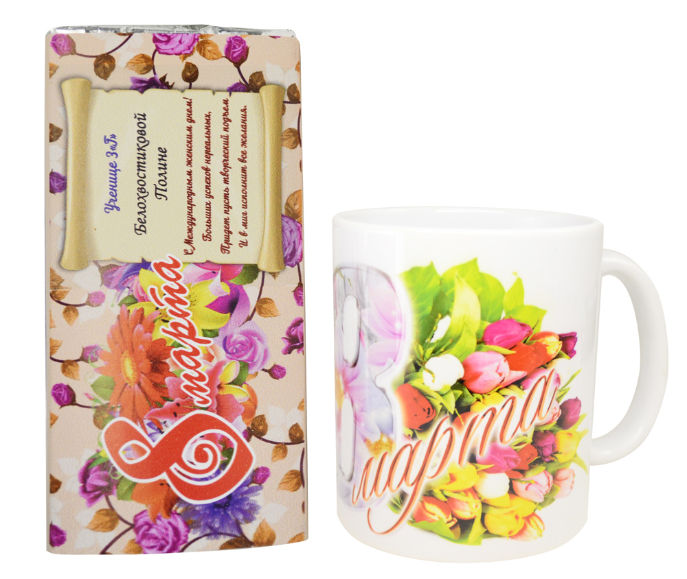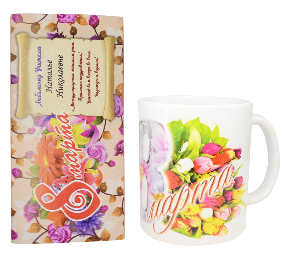 Подарочный набор состоит из красочной кружки с именным шоколадом "Бабаевский" в тематической обертке.