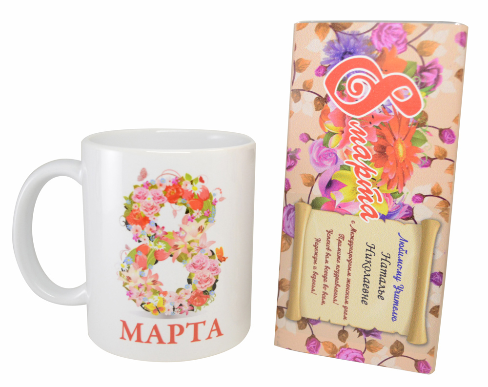 Подарочный набор состоит из красочной кружки с именным шоколадом "Бабаевский" в тематической обертке.
